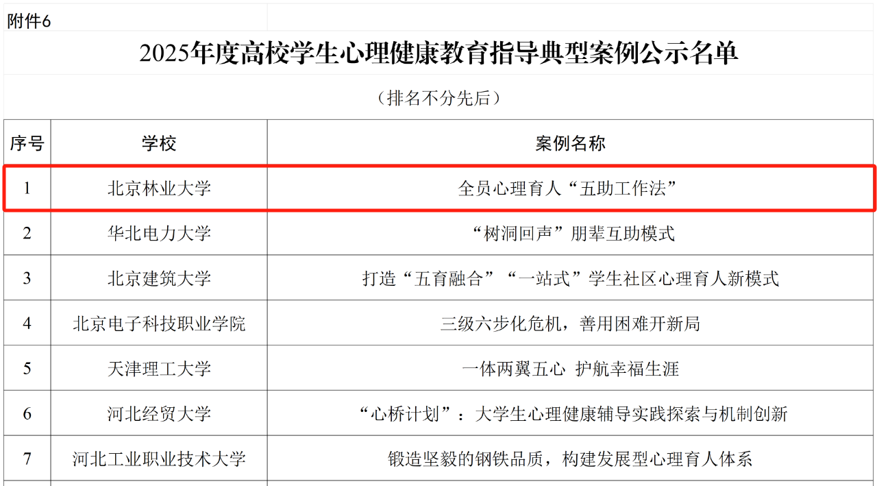 在學(xué)校心理健康教育中心指導(dǎo)下,水保學(xué)院幫助處于異常心理狀態(tài),伴有學(xué)業(yè)、人際等問題的學(xué)生20余名,以有溫度有精度的幫扶工作得到了學(xué)生家長的普遍認可,并在工作基礎(chǔ)上凝練形成全員心理育人“五助工作法”。2024年,我校印發(fā)《關(guān)于推廣使用全員心理育人五助工作法的通知》,將其作為三全育人成功案例在全校范圍推廣使用。