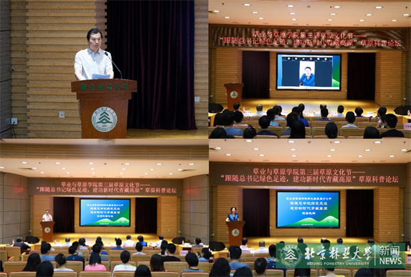 張志強(qiáng)在致辭中指出,青藏高原草地是世界上海拔最高、面積最大、類型最為獨(dú)特的草地生態(tài)系統(tǒng),是長江、黃河、瀾滄江等河流的水源涵養(yǎng)區(qū),在生態(tài)保護(hù)和社會經(jīng)濟(jì)發(fā)展中發(fā)揮著不可替代的作用。北京林業(yè)大學(xué)順勢而為成立草業(yè)與草原學(xué)院、黃河流域生態(tài)保護(hù)和高質(zhì)量發(fā)展研究院,積極承擔(dān)第二次青藏科考任務(wù),為青藏高原生物多樣性調(diào)查、三江源生態(tài)建設(shè)效益與生態(tài)服務(wù)功能評估、重要濕地生態(tài)功能修復(fù)、城鎮(zhèn)人居景觀質(zhì)量提升等工作提供技術(shù)攻關(guān)與服務(wù)支撐。他希望草學(xué)院要進(jìn)一步發(fā)揮草學(xué)專業(yè)優(yōu)勢,積極宣傳草原保護(hù)知識,勇當(dāng)草原文化宣傳大使,爭做草原生態(tài)保護(hù)建設(shè)的排頭兵,共同守護(hù)好美麗的草原、我們的家園。