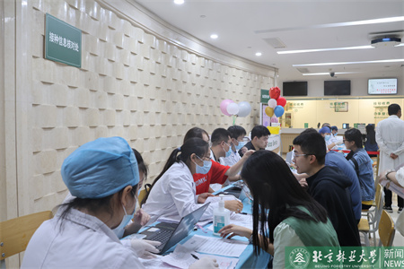 暖心服務“向前一步”,醫食住行放心無憂。新生報到期間,為新生開設專梯,減少等待時間,提高新生入住效率;針對有需求的新生,主動提供床鋪改造服務申請通道;在各迎新服務站點,安排醫護人員值守,做好醫療服務保障;東西區商貿、部分食堂的北林首款文創冰棍紛紛推出優惠活動,并在東西區各設置一個生活用品售賣點,方便新生一站式購買生活用品;校醫院從人員組織安排、體檢流程設計、路線設計、提示標語等各方面,統籌安排新生入學體檢工作,提高新生體檢效率和體驗感。全體醫護人員加班加點,連續奮戰三天,完成血型鑒定1315人,為新生接種麻風腮疫苗2534人,接種水痘疫苗968人。此外,在迎新期間,綜保部還主動提供林之心、星泉廣場兩個校園景觀的參觀講解服務,幫助新生在入學時了解校園景觀中蘊含的生態理念和校園文化。