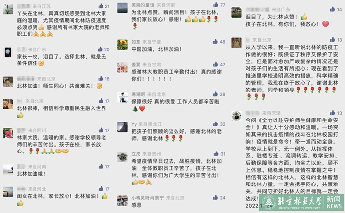 近段時間來,北京疫情形勢復雜嚴峻,在校黨委的堅強領導下,全體北林師生員工同心戰(zhàn)“疫”、共克時艱,而在網(wǎng)絡另一端,學生家長們也非常關心、牽掛學校,不斷為學校加油鼓勁,傳遞齊心抗“疫”的力量。