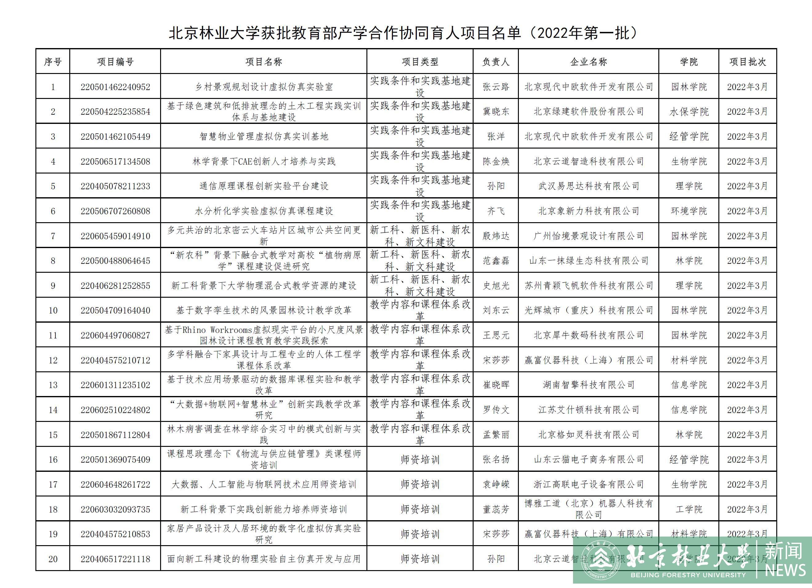 我校本次獲批項目的數量同比往年增長了100%,獲批的項目類型、企業資助顯著增加,且連續幾年保持高速增長,充分體現了我校創新實施“北京林業大學樹人行動計劃”,著力推進“八大人才培養工程”取得的成果。下一步,我校將繼續積極推進產學合作協同育人工作,促進高校教育鏈、人才孵化鏈與產業成長鏈、創新創業鏈的有機銜接。