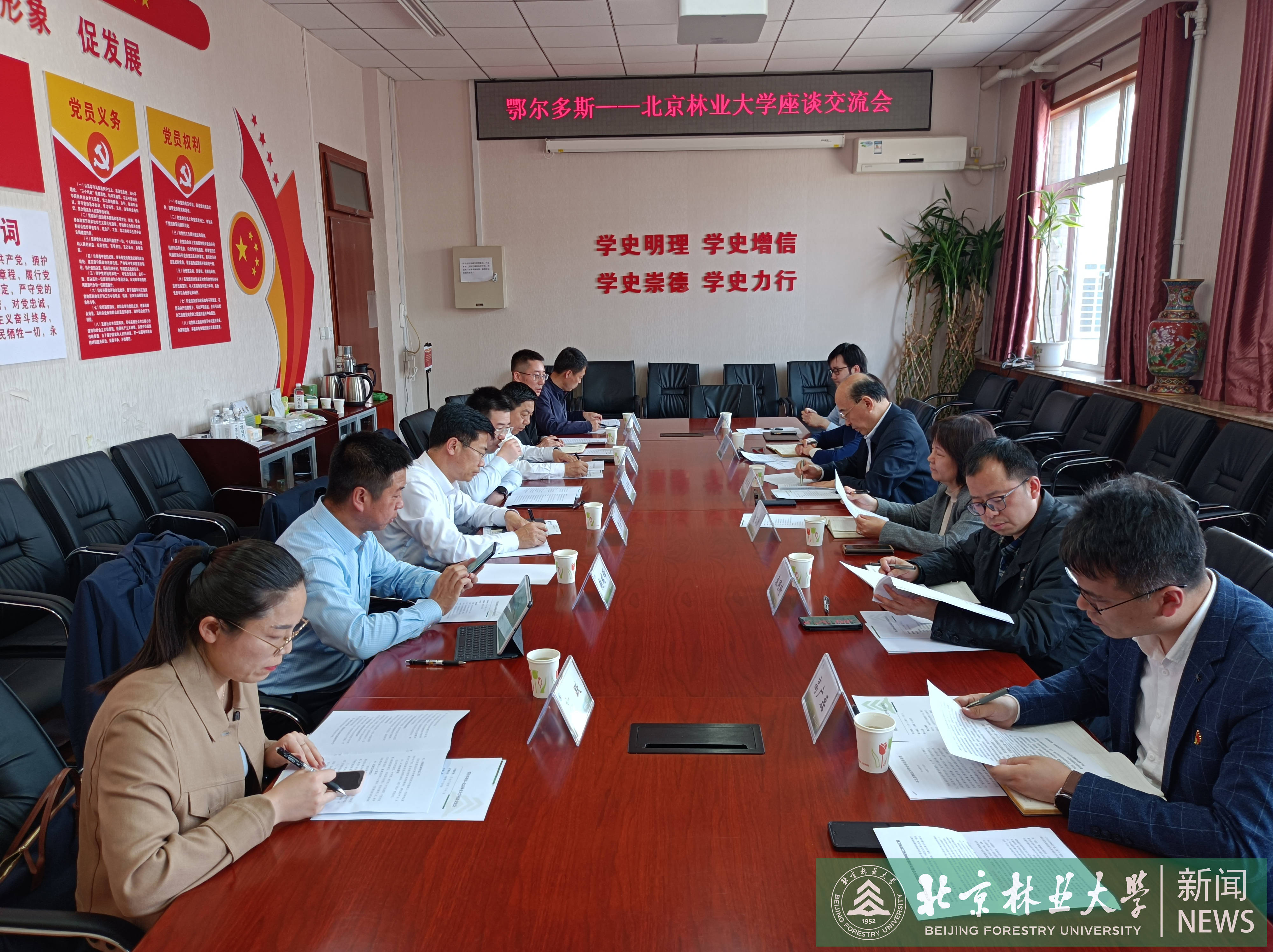 近日,鄂爾多斯市林草局局長及相關單位代表一行來校座談交流,副校長張志強出席會議。