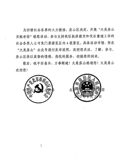 近日,我校收到中共北京市房山區委員會和北京市房山區人民政府發來的感謝信,信中對我校師生參與房山區災后重建工作表示感謝。