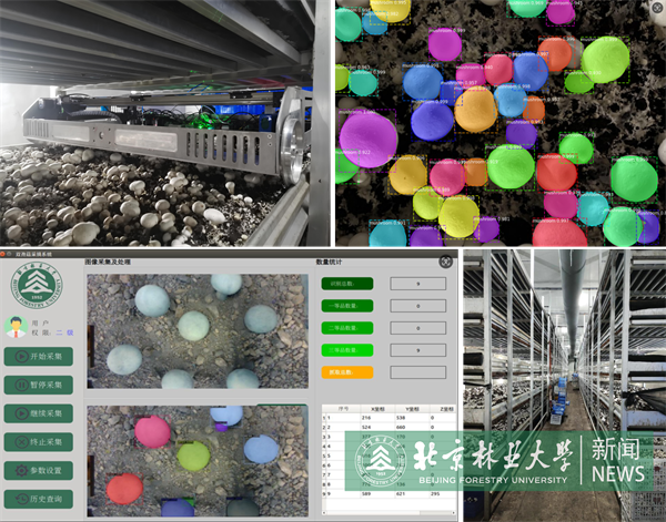 由工學院閆磊教授指導,研究生常圓順、周吉、郭浩盟、柴哲明、劉恒、周心悅共同組成的“視界菌菇獵人”,以作品《智能雙孢菇采摘機器人系統》獲評科技發明制作類三等獎。團隊長期致力于開發智能雙孢菇采摘機器人系統,該系統擁有完善的知識產權,目前已授權發明專利2項、軟件著作權4項,并累計獲得省部級競賽獎勵5項、國家級競賽獎勵2項、校級競賽獎勵10余項。該系統結合前沿的深度學習圖像識別算法和高精度的機器人運動控制技術,實現了雙孢菇的實時精準識別與無損智能化采摘。該系統可使標準化大棚的出菇速度提高至人工的兩倍以上,產品損傷率降至2%以下。通過一次性投資,單個標準化大棚在十年內的平均年采摘成本可降低1.4萬元以上,展現了較為顯著的經濟效益和成本優勢。