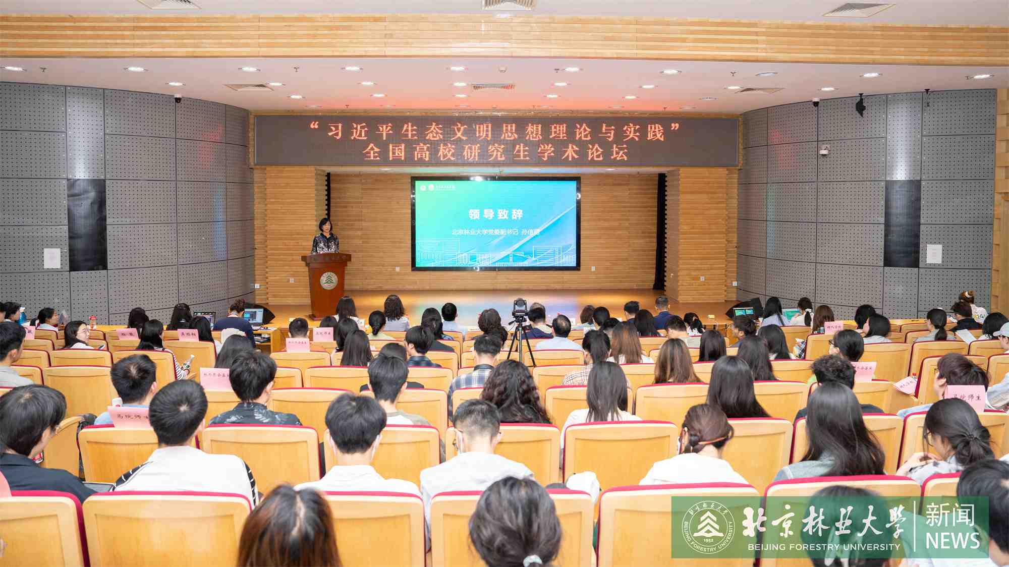 孫信麗在論壇開幕式上致辭。她表示,舉辦“習近平生態文明思想理論與實踐”全國高校研究生學術論壇,既是研究闡釋習近平生態文明思想取得重要成果的集中交流展示,也是全國高校深入貫徹落實習近平生態文明思想、號召廣大青年學生爭做習近平生態文明思想的堅定信仰者和忠實踐行者的重要舉措。我校將習近平生態文明思想作為成功之鑰、動力之源,把生態文明建設作為立校之本、發展之基,緊抓習近平總書記勉勵語精神落實,在生態文明宣傳教育、綠色科技創新等方面取得了扎實成效。她號召廣大師生爭做習近平生態文明思想的積極傳播者和模范踐行者,爭做生態文明建設的創新引領者和有力開拓者,為建設美麗中國匯聚磅礴青春力量。