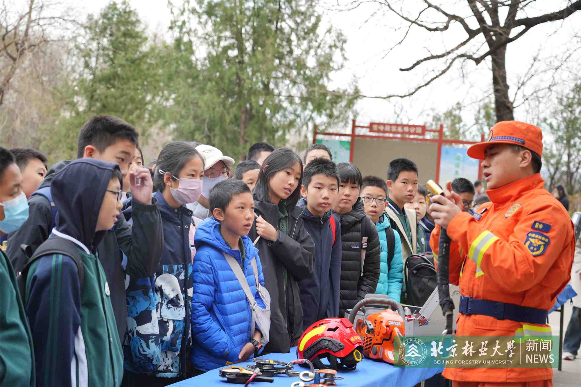 鷲峰國際梅園內,“春暖花開 傳韻流香”課程以梅花文化為脈絡,從陸游“零落成泥香如故”的詠梅詩,到北林大“南梅北移”的科研突破,同學們在觀察真梅、杏梅、櫻李梅的形態差異中,讀懂“一樹獨先天下春”的開拓精神。而“鷲峰消防體驗”則通過模擬滅火、裝備操作,將“森林防火”的責任意識深植童心。一名參與消防演練的學生說:“原來守護青山,也需要像昆蟲適應環境一樣學習新技能!”