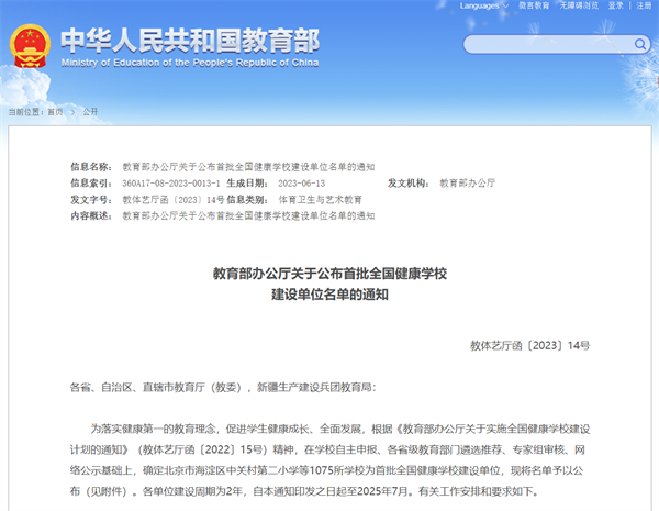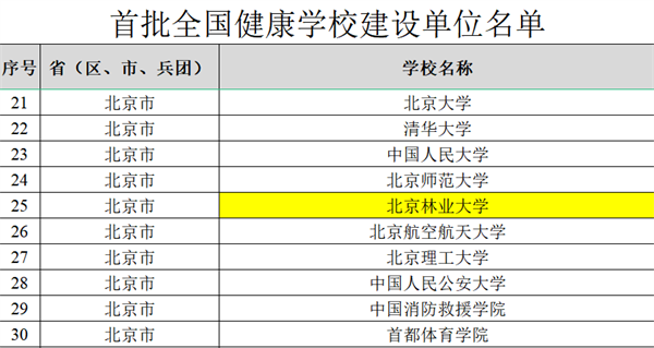 近日,教育部公布了首批全國健康學校建設單位名單,我校成功入選,北京市有10所高校入選。