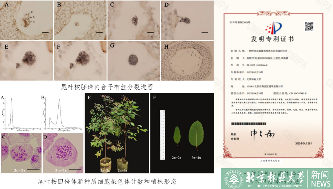 合子染色體加倍是誘導植物四倍體的重要途徑。但桉樹生殖生物學和細胞遺傳學基礎研究十分欠缺,迄今尚未見有關桉樹合子發育及其休眠時期的報道,更未見有關基于合子染色體加倍途徑誘導四倍體的研究。生物科學與技術學院桉樹育種團隊此次的研究結果對于擴大尾葉桉四倍體種質資源,以及基于四倍體與二倍體雜交選育三倍體具有重要價值,對于其它桉樹多倍體育種也具有重要的理論和技術指導意義。
