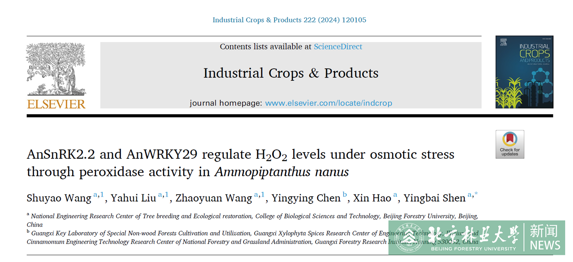 近日,生物科學與技術學院沈應柏教授團隊在《INDUSTRIAL CROPS AND PRODUCTS》(中國科學院一區TOP,影響因子:5.6)上發表了題為“AnSnRK2.2 and AnWRKY29 regulate H2O2 levels under osmotic stress through peroxidase activity in Ammopiptanthus nanus”的研究論文。研究揭示了新疆沙冬青(Ammopiptanthus nanus)通過增強植株內過氧化氫(H2O2)的清除機制,從而增強了其對滲透脅迫的耐受性。此項工作能夠對新疆沙冬青的保護和恢復,以及對植物適應逆境的研究產生積極貢獻。