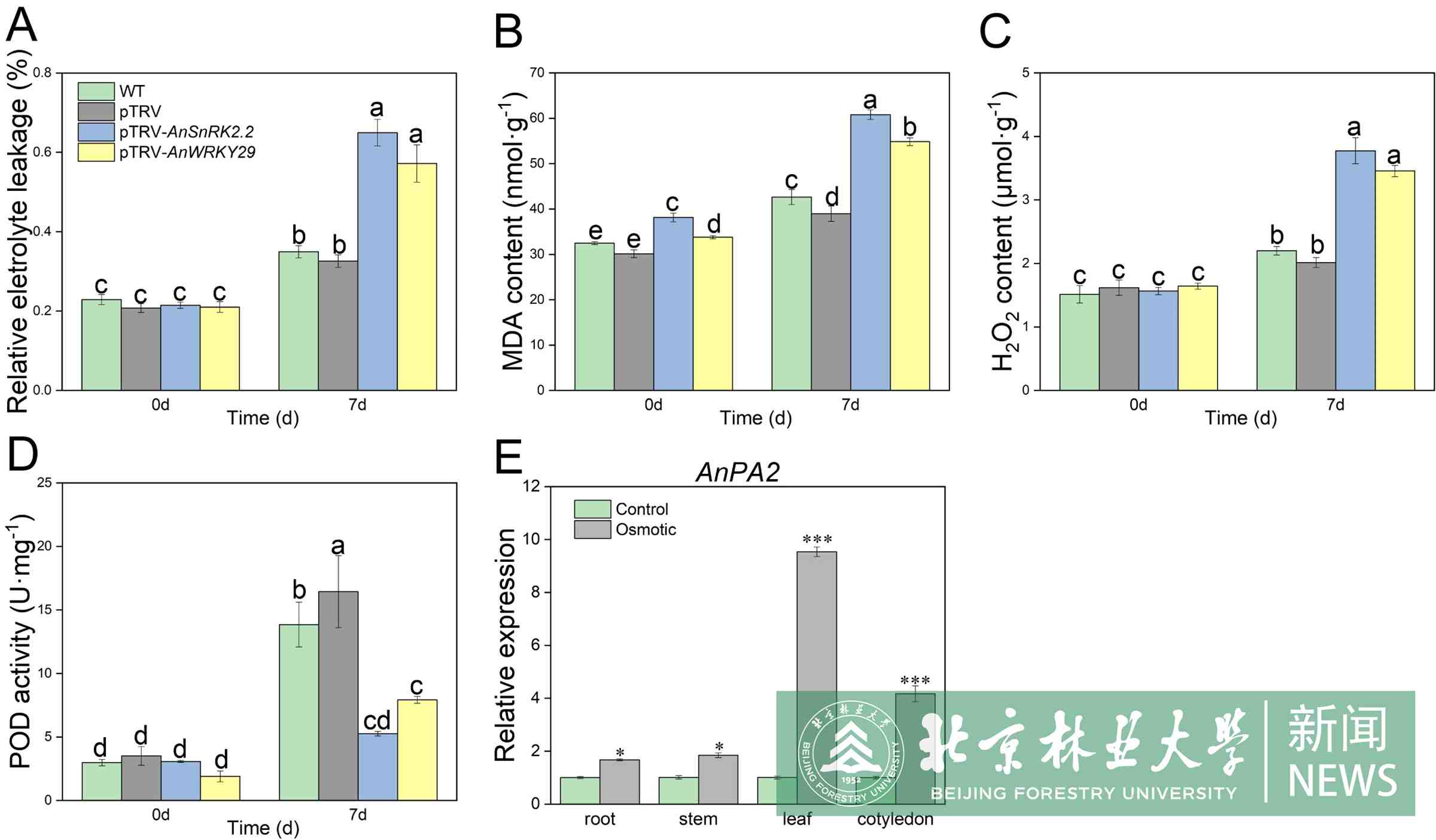 此外,由AnPA2編碼的38.5 kDa過氧化物酶,屬于植物過氧化物酶III類,對減輕新疆沙冬青中由H2O2誘導的膜脂過氧化起著關鍵作用。該研究揭示了AnWRKY29可以直接調控AnPA2的轉錄,從而影響過氧化物酶的合成。