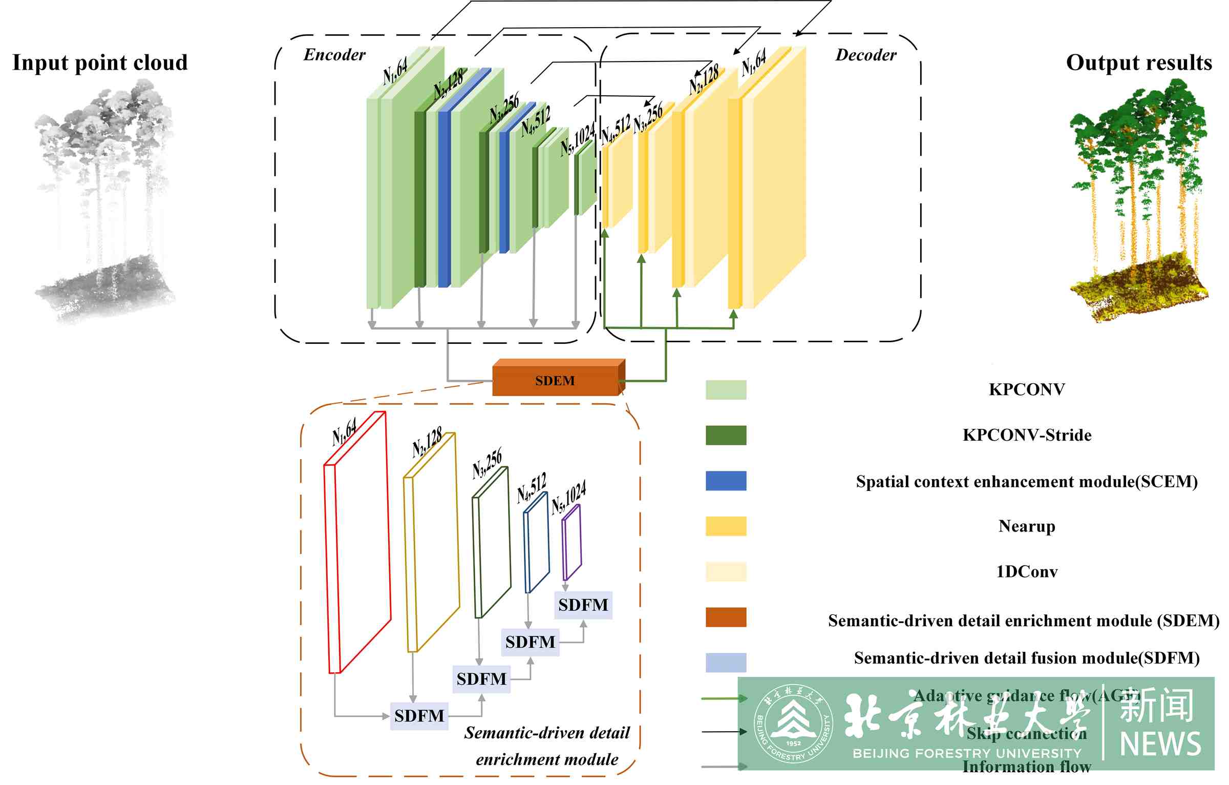 團(tuán)隊(duì)基于長期在三維點(diǎn)云處理方面的研究,充分發(fā)揮“遙感—林草—AI”學(xué)科交叉融合的優(yōu)勢(shì),發(fā)展了數(shù)據(jù)驅(qū)動(dòng)的深度神經(jīng)網(wǎng)絡(luò)模型,從森林場(chǎng)景三維點(diǎn)云有效分離出樹葉、木質(zhì)成分、低矮植被及地面。針對(duì)這一目標(biāo):