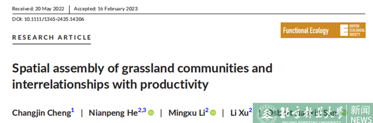 原文信息:Cheng CJ, He NP*, Li MX, Xu L, Sun JX*. 2023. Spatial assembly of grassland communities and interrelationships with productivity. Functional Ecology, 37: https://doi.org/10.1111/1365-2435.14306.