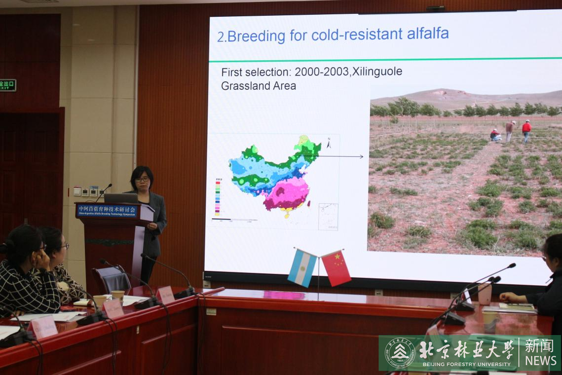 近日,中阿牧草育種合作協議簽約儀式暨中阿苜蓿育種技術研討會在山東舉行。阿根廷國家農業技術院教授、世界知名苜蓿育種專家、第二屆世界苜蓿大會主席丹尼爾·巴斯蓋洛普以及來自北京林業大學、中國農業科學院、青島農業大學等單位的專家學者共計50余人參加會議。草業與草原學院副教授王鐵梅應邀參會并做專題學術報告。