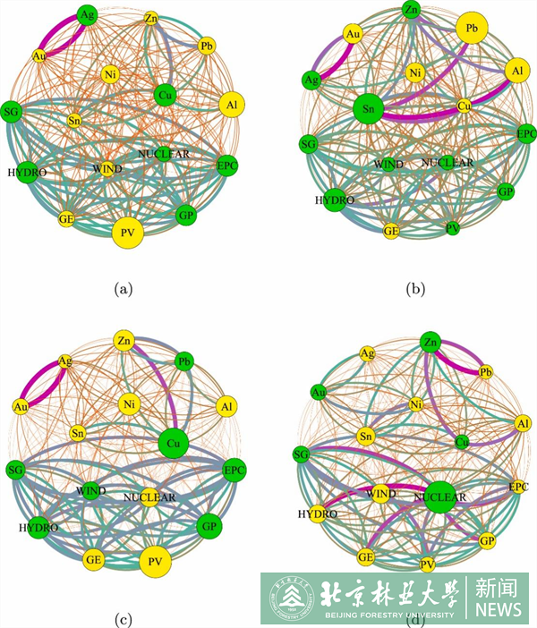 隨著“雙碳目標”的提出,如何推動低碳能源生產、發展清潔能源市場,成為我國實現低碳經濟轉型的關鍵問題。針對清潔能源市場的金融風險治理問題,鄧晶副教授課題組將復雜網絡中用于信息過濾的最小生成樹方法應用到金融風險傳染問題中,并運用時頻溢出指數刻畫子市場之間風險溢出規模與方向。結合我國國情,論文選擇了《節能環保清潔能源行業統計分類2021》劃分的八大清潔能源行業所對應的股票市場和八種有色金屬期貨市場作為研究對象。研究發現,風險主要從清潔能源市場傳遞到有色金屬市場,同行業子市場之間更容易發生風險傳染。新冠疫情不僅使兩個市場之間的風險傳染規模與方向發生改變,還影響了風險傳染的最短路徑與關鍵市場。