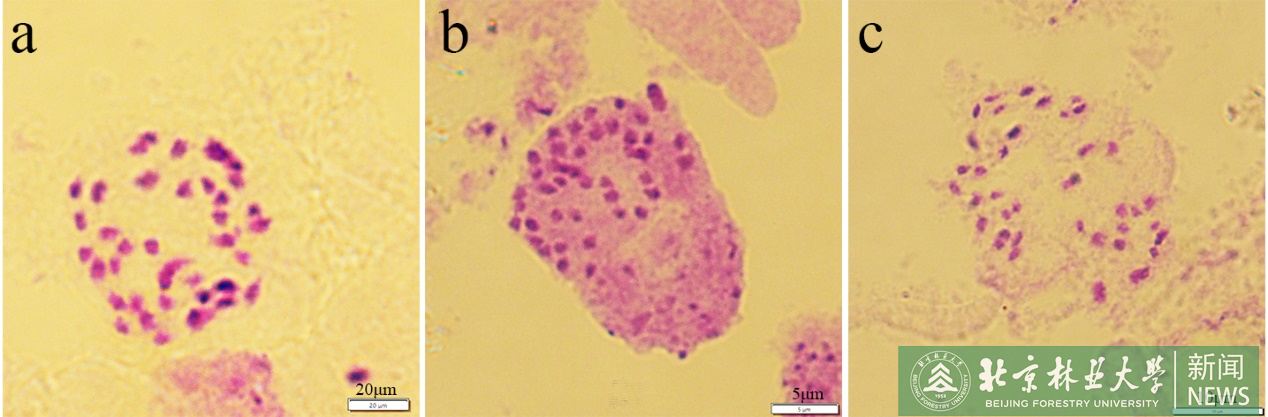近日,生物學院張平冬教授團隊在《BMC Plant Biology》(中科院二區,IF=5.208)上發表了題為“Microsporogenesis" in the triploid hybrid ‘Beilinxiongzhu 1#’ and detection of primary trisomy in 2x × 3x Populus hybrids”的研究論文。該論文以三倍體白楊‘北林雄株1號’為研究材料,在觀察其小孢子發生發育的基礎上,利用‘北林雄株1號’與銀腺楊進行回交,獲得393株楊樹非整倍體材料。進而通過篩選可識別楊樹每條染色體的特異性SSR分子標記,構建了鑒別楊樹非整倍體染色體數目的方法,在國際上首次獲得2個楊樹三體植株。