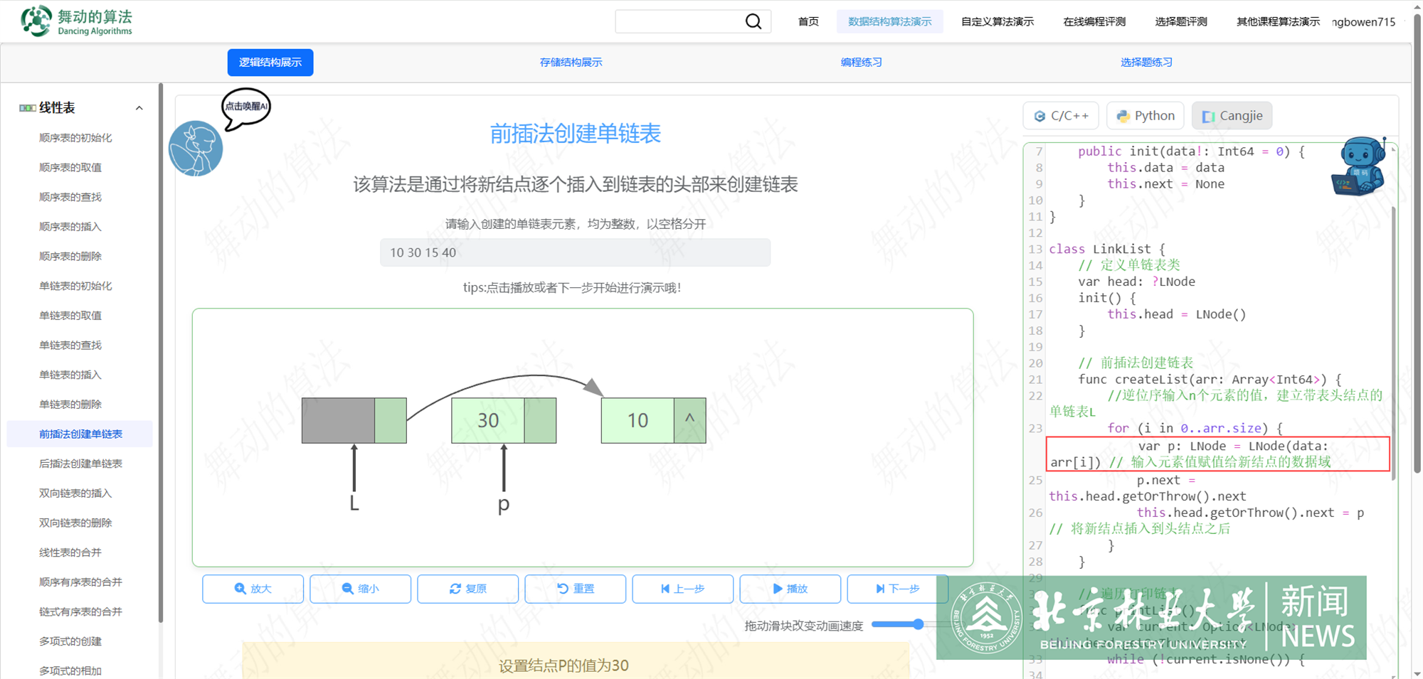 李冬梅教授團隊在“數(shù)據(jù)結(jié)構(gòu)”教學(xué)領(lǐng)域深耕多年,其主編的《數(shù)據(jù)結(jié)構(gòu)(C語言版)》作為“十二五”本科國家級規(guī)劃教材,累計銷量100余萬冊,被國內(nèi)500余所高校選用。依托深厚的教學(xué)積淀與豐富的教學(xué)資源,創(chuàng)新融合可視化及人工智能技術(shù),“舞動的算法”打造了算法動態(tài)演示、在線編程評測與智能學(xué)習(xí)助手三大核心功能。