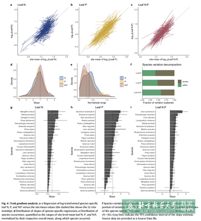 近日,林學(xué)院青年教師田地及合作者在《Nature Communications》上發(fā)表題為“Environmental versus phylogenetic controls on leaf nitrogen and phosphorous concentrations in vascular plants”的研究論文,在維管植物葉片氮磷計(jì)量特征宏觀格局驅(qū)動(dòng)機(jī)制方面取得重要突破。田地副教授為論文第一作者兼第一通訊作者,北京林業(yè)大學(xué)(林木資源高效生產(chǎn)全國(guó)重點(diǎn)實(shí)驗(yàn)室)為第一完成單位。