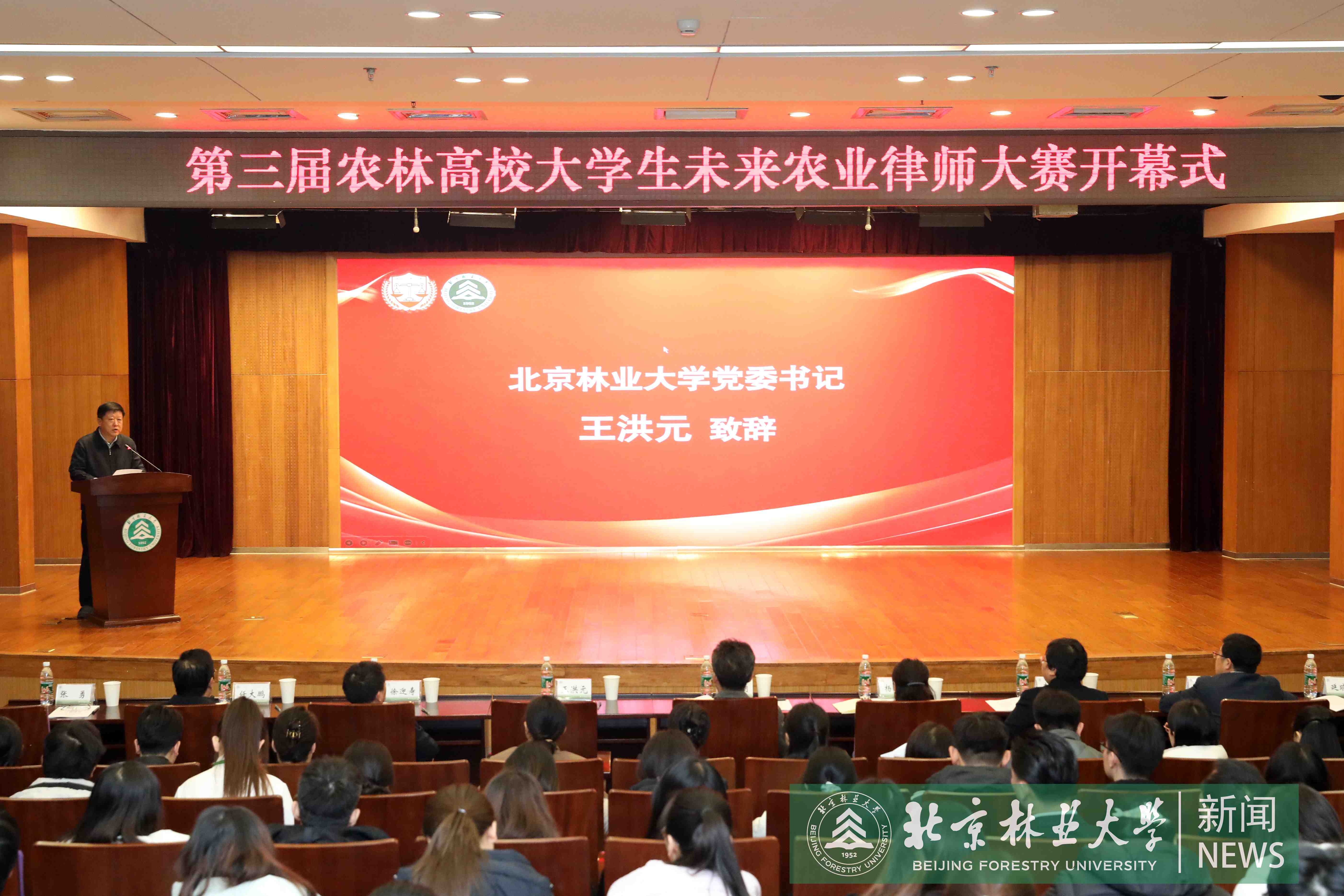 王洪元對各位領導、學員的到來表示熱烈歡迎,對來自22所農林高校的參賽選手致以真摯祝福與期待。他指出,農業和林業事關生態安全、糧食安全、鄉村振興等國家重大戰略,農林法治建設是全面依法治國、法治中國建設的重要組成部分。黨和國家迫切需要一大批農林基礎知識扎實、精通行業法律法規的復合型人才。希望通過舉辦大賽,搭建農林領域法律人才交流與實踐平臺,探索人才培養新模式,以模擬實戰方式把專業知識與法治實務結合起來,幫助廣大青年學生提高自身綜合能力,立志投身農林法治建設,為提升我國農林法治水平注入新活力、新動能。期待學校通過本次大賽,進一步加強與行業指導單位的溝通聯動、加強與兄弟高校的交流合作,共同在培養農林法治人才這項長期戰略中再立新功。