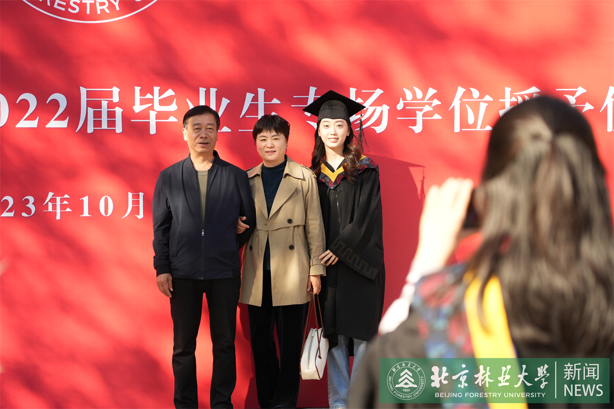 10月15日,北京林業(yè)大學(xué)2020-2022屆畢業(yè)生專場學(xué)位授予儀式在田家炳體育館舉行。校長安黎哲,校領(lǐng)導(dǎo)謝學(xué)文、王濤、孫信麗、李雄、程武、張志強(qiáng)以及各學(xué)院院長共同為近1500名畢業(yè)生撥穗正冠。300余名畢業(yè)生家屬在學(xué)研報告廳觀禮,共同見證2020-2022屆畢業(yè)生人生重要時刻。