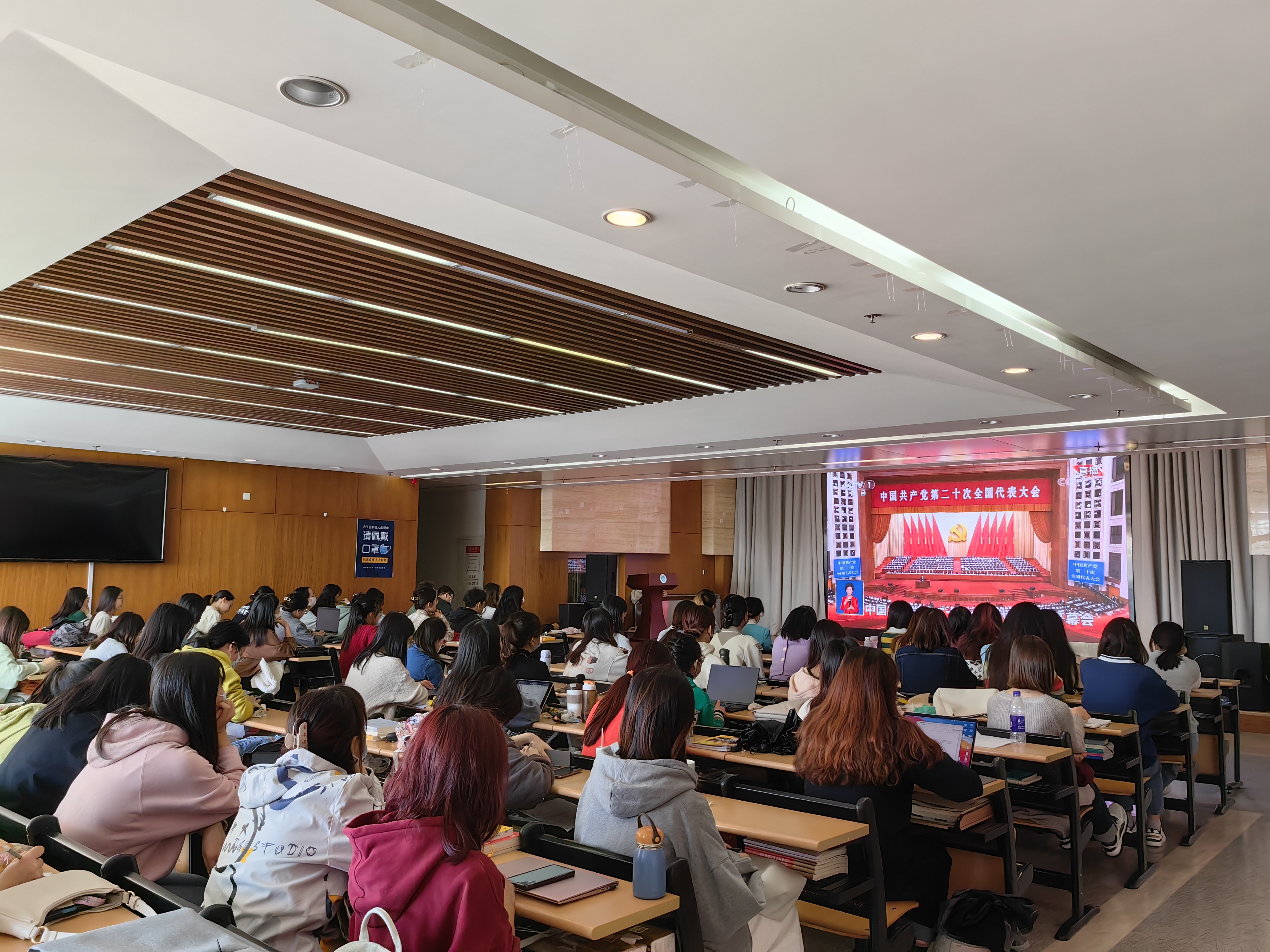 中國共產黨第二十次全國代表大會于10月16日上午10時在人民大會堂大禮堂開幕。北京林業大學全體校領導、各部門負責人、教師黨支部書記代表、教師代表共160余人集體在學研大廈報告廳觀看習近平總書記在中國共產黨第二十次全國代表大會上的報告。