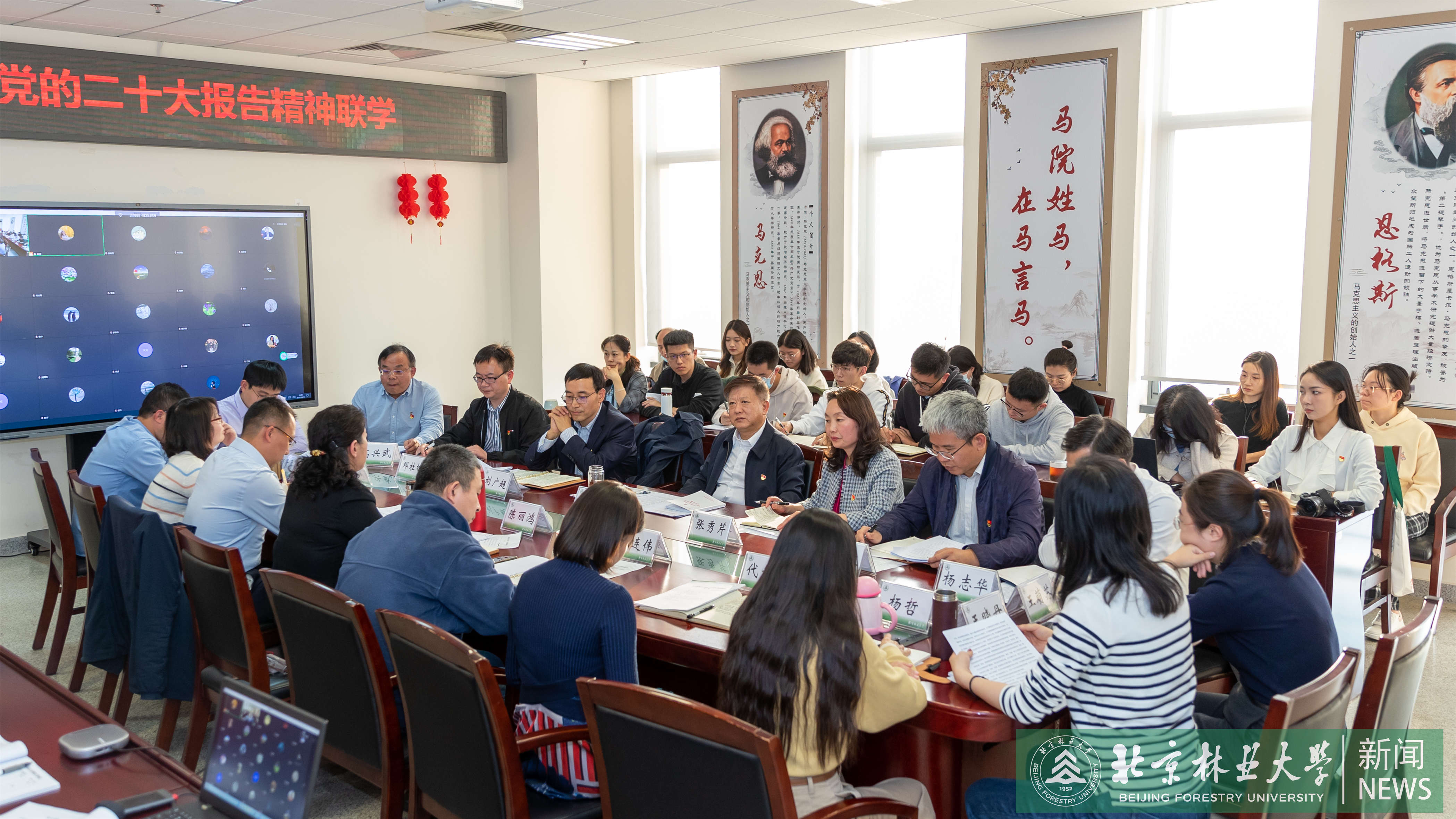 王洪元指出,北京林業大學馬克思主義學院是北京市重點建設馬克思主義學院,馬院正處在各項事業發展的關鍵時期。學院要進一步提高政治站位,深入學習宣傳貫徹黨的二十大精神,在理論宣講、融入課堂、研究闡釋等方面下狠功夫、花大力氣,要在學習宣傳貫徹黨的二十大精神中找到立院之本,把握發展機遇,發揮特色優勢,努力將學院打造成為學習宣傳貫徹習近平生態文明思想的理論高地。