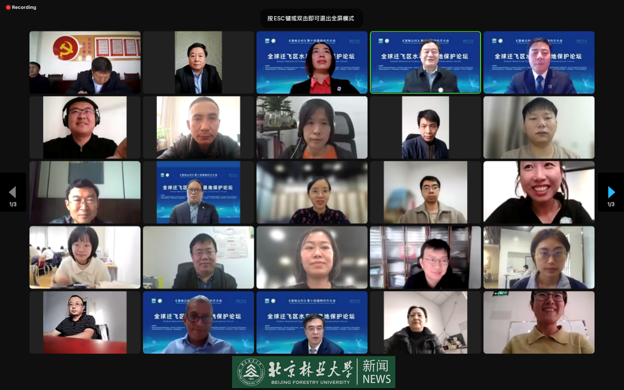 11月5日至13日,《濕地公約》第十四屆締約方大會在武漢與日內(nèi)瓦舉辦。11月9日,我校與國家林業(yè)和草原局林草調(diào)查規(guī)劃院、聯(lián)合國開發(fā)計(jì)劃署駐華代表處、中國野生動物保護(hù)協(xié)會、世界自然基金會、國際鶴類基金會共同舉辦了此次大會的邊會論壇——全球遷飛通道水鳥棲息地保護(hù)論壇,校長安黎哲視頻致辭。
