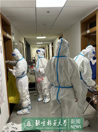 “噠噠噠”一位女老師快步跑在北林校園,她是雄安指揮部的韓茹雨。幾分鐘前,她剛接到通知“進駐7號樓”。回憶起剛進樓的那天,她笑著說:“路上遇見的每一位工作人員,不論是耐心仔細發放防疫物資的工作人員,還是7號樓外細心幫助我穿好防護服的保安大叔,知道我是駐樓專班,都給予極大關照。現在想想,那一刻除了緊張、擔憂,還有迎接挑戰的興奮!”