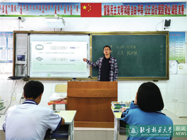 在開學第一課上,高鵬先給同學們展示了北京林業大學的校園生活,鼓勵他們刻苦學習。在后續的課程中,他將北林的精神文化融入教學里,通過這些帶給了學生們不一樣的觀察世界的角度與方法,讓學生們能有低頭走穩路的實干精神,也有抬頭看世界的理想情懷,在學生們心中埋下了一顆信念的種子。