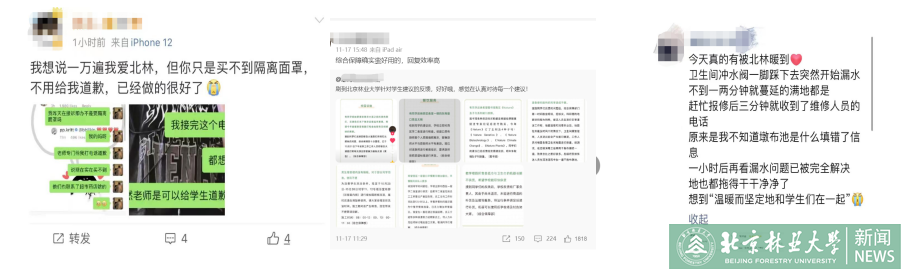 “努力傾聽(tīng)學(xué)生聲音的北林,愛(ài)了!”在學(xué)校官微后臺(tái),每天都能收到來(lái)自學(xué)生熱情洋溢的留言,而在抖音平臺(tái)上,我校接訴即辦的暖心舉措收獲了40余萬(wàn)網(wǎng)友點(diǎn)贊,近2萬(wàn)條留言。