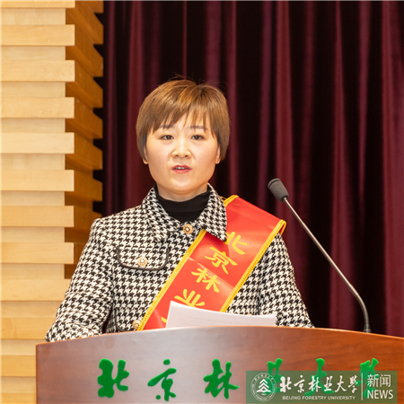 大會對10名巾幗先鋒和22名“三八”紅旗標兵進行頒獎表彰。巾幗先鋒代表林學院付玉杰、學生處劉祥輝、草業與草原學院王鐵梅、園林學院李燕妮、綜合保障部王麗分別發言。