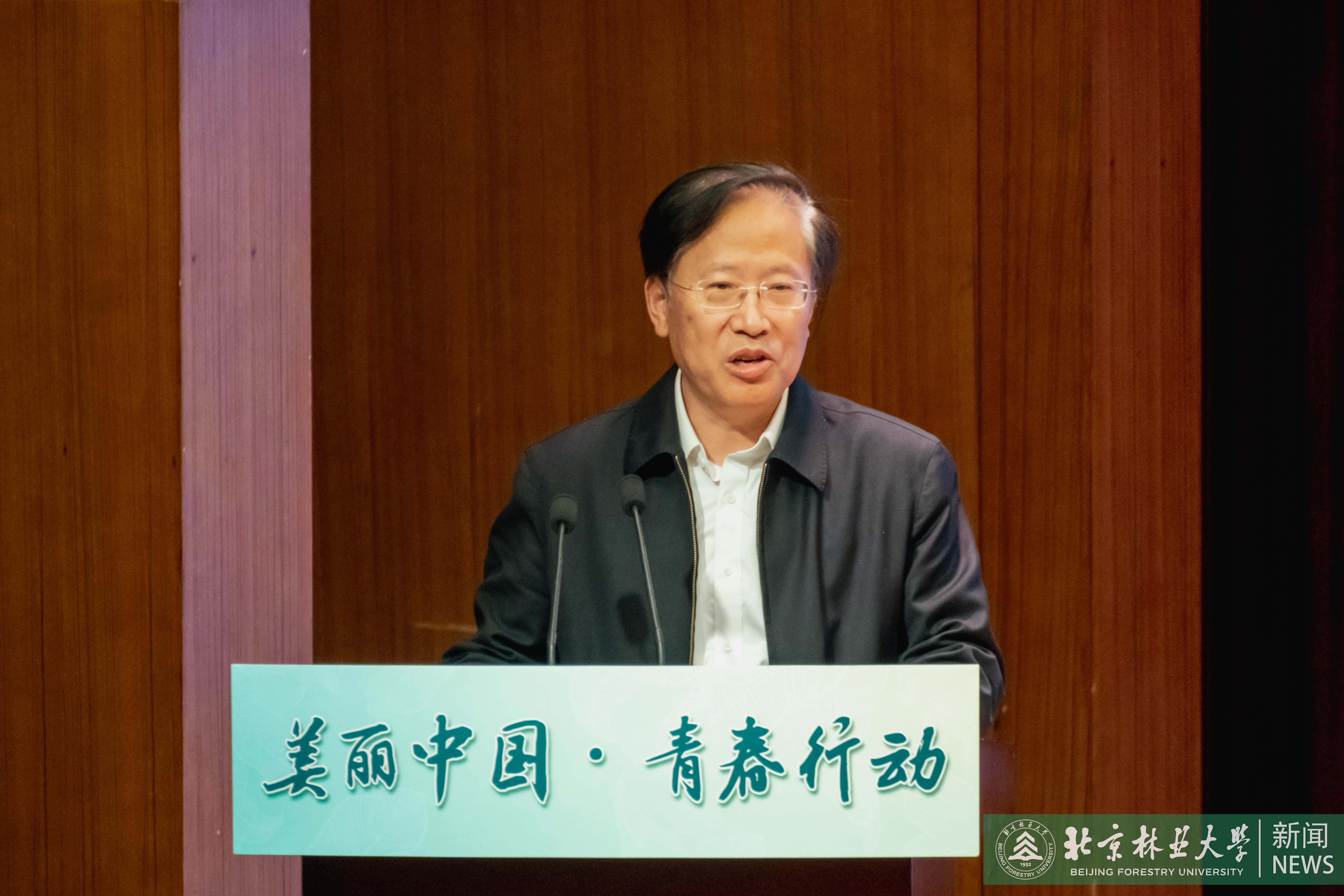 校黨委書記王洪元致辭,他向長期以來關心和支持我校發展建設的有關部門領導和社會各界表示衷心感謝。他指出,我校作為“美麗中國”建設的高校排頭兵,堅持用習近平生態文明思想指導辦學實踐:一是建強全國青少年生態文明教育中心,構建以學校教育為基礎、覆蓋全社會的生態文明宣傳教育體系;二是依托高校和科研院所學科智力優勢,持續開展青少年生態文明教育實踐項目,形成高質量、有影響的學術成果和實踐活動品牌;三是培養更多胸懷“植綠報國”理想的新時代青年,激勵青年學子做習近平生態文明思想的忠實實踐者。