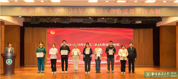孫信麗在會上宣讀了《共青團北京林業大學委員會關于表彰2022—2023年先進集體及個人的決定》,并為二級學院青年教師團工委授牌。為組織動員青年教師參與學生全面發展,促進成長成才,2022年在5個試點學院成立了青年教師團工委,取得一定成效。今年已完成其余11個學院青年教師團工委成立工作,進一步提升青年教師思想政治素質和育人能力。