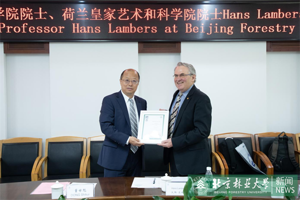 會上,李召虎為Hans Lambers教授頒發(fā)北京林業(yè)大學(xué)發(fā)展戰(zhàn)略咨詢委員會委員聘書。