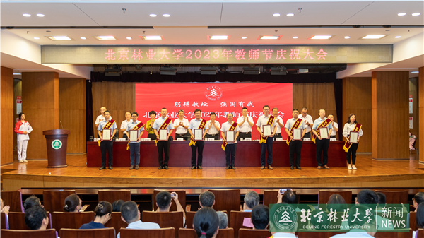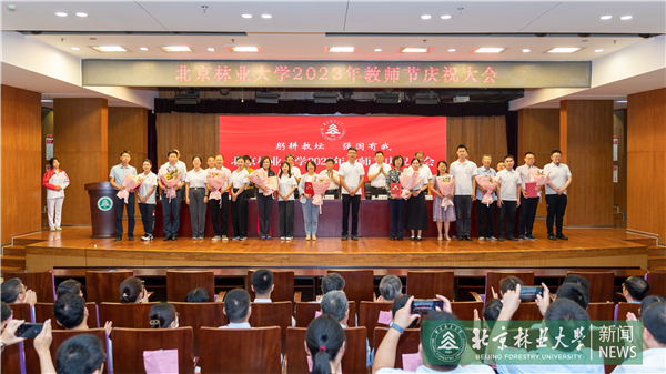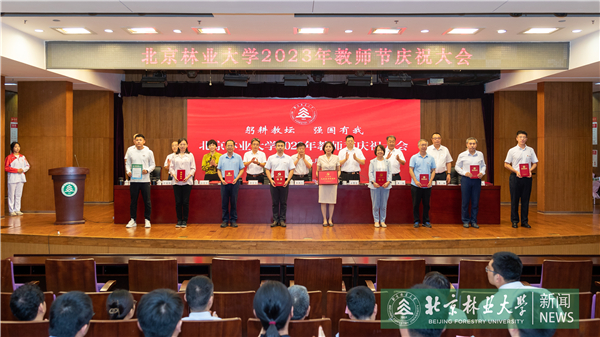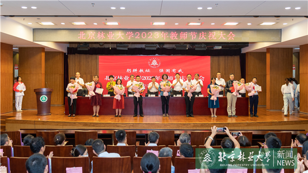 校黨委副書(shū)記謝學(xué)文宣讀《北京林業(yè)大學(xué)2022-2023年度教師獲得獎(jiǎng)勵(lì)及稱(chēng)號(hào)情況通報(bào)》,全體校領(lǐng)導(dǎo)為優(yōu)秀教師代表頒獎(jiǎng)。