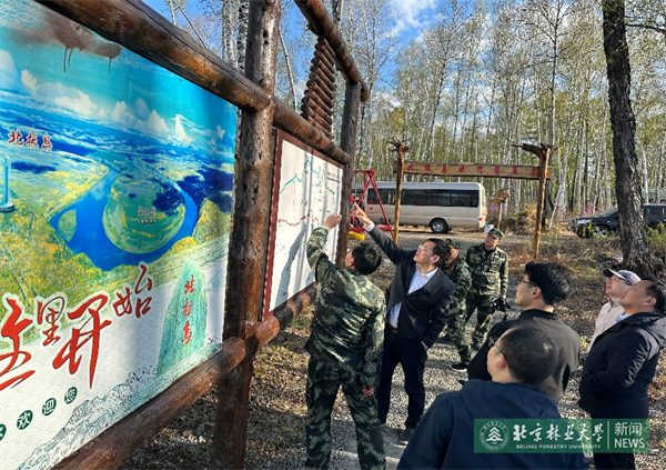 在圖強林業局和阿木爾林業局,安黎哲一行參觀了兩個林業局共同開發打造的“龍江第一灣”。阿木爾林業局書記韓鳳泉、圖強林業局局長劉健介紹了景區的整體規劃和開發歷程。在阿木爾林業局龍河驛站,安黎哲一行詳細了解了正在建設的“北極明珠”氣象綜合觀測科研基地。安黎哲指出,生態旅游是“兩山”轉化的有效途徑,我校近年來積極服務國家生態文明建設,在“兩山”轉化的研究與實踐方面成果豐碩,雙方可以嘗試在生態旅游開發方面展開更多合作。
